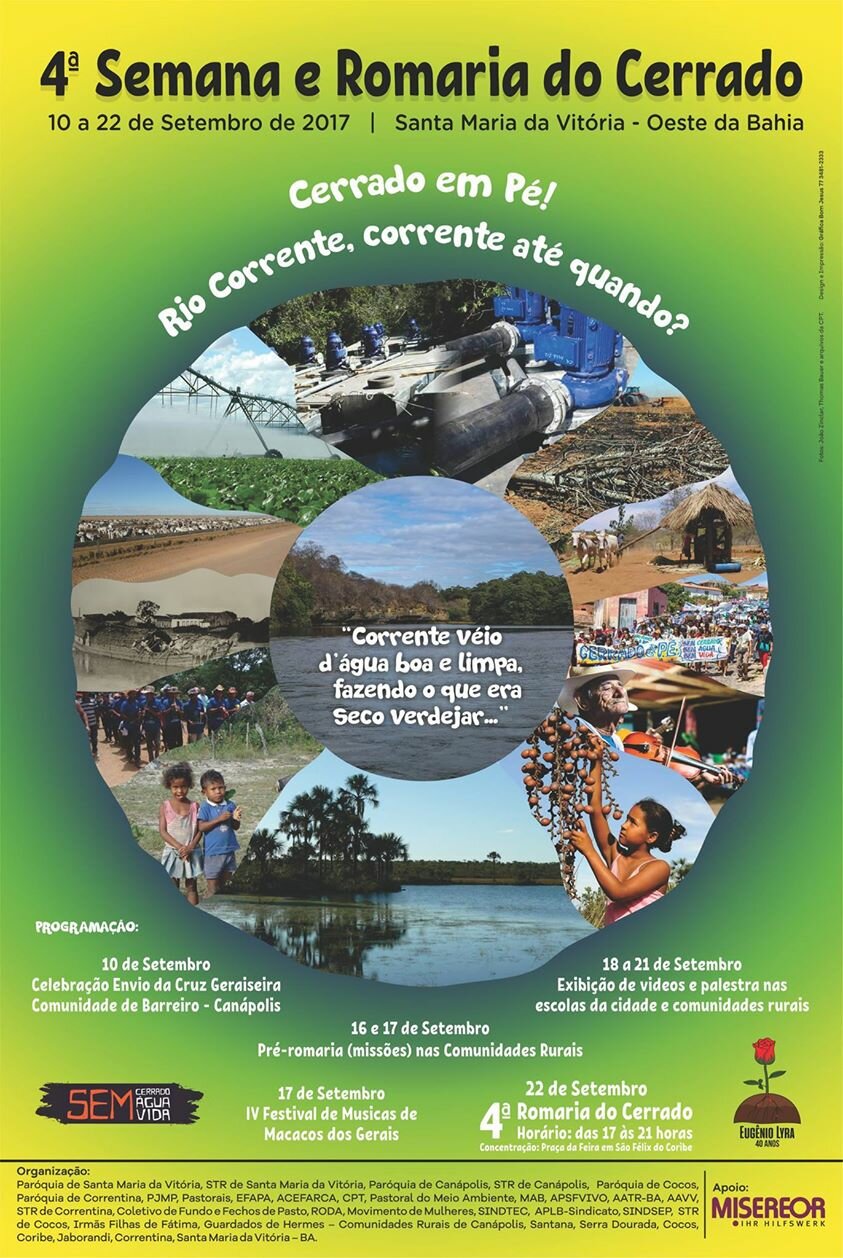 Atividades de visitas e reuniões nas comunidades rurais de Santa Maria da Vitória, Apresentação de Vídeos sobre o Cerrado em Escolas, o IV Festival de Músicas Raiz na Comunidade de Macacos dos Gerais – Santa Maria da Vitória e a 4ª Romaria de Cerrado, são atividades que estarão acontecendo nesses dias, com o intuito de estimular o debate e as reflexões acerca do “Cerrados” e das águas do Corrente, que são um dos principais objetivos das Semanas e Romarias do Cerrado na Diocese de Bom Jesus da Lapa.