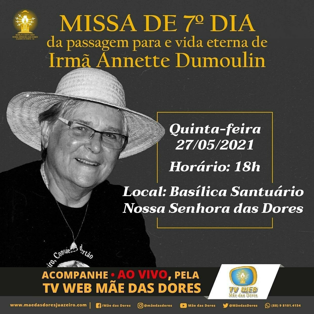 Neste momento, a nação romeira e a legião de amigos choram a partida para a eternidade da Irmã Annette, porque ela nos amou e nós a amamos, e o AMOR É ETERNO!