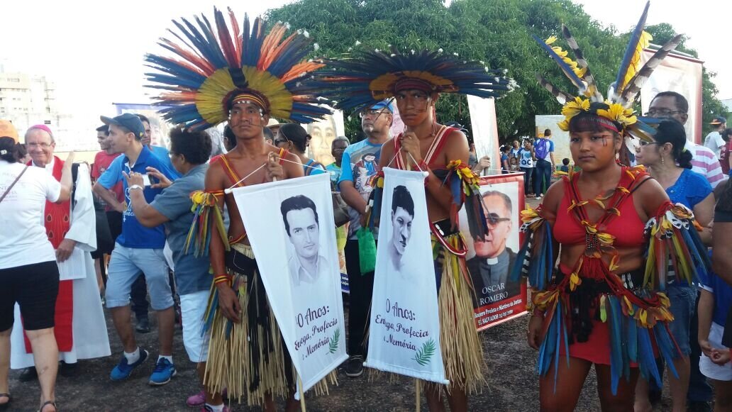 Margarida Alves, Simão Bororo, Dom Oscar Romero, Chico Mendes, padre Josimo e DorcelinaFolador foram alguns dos mártires lembrados entre cantos, estandartes e palavras de luta. Já o tema da Campanha da Fraternidade – “Biomas brasileiros e defesa da vida” – teve dança de grupos escolares e oferenda de alimentos do Cerrado por trabalhadores rurais. Índios da região também participaram da simbologia. O tema da Campanha da Fraternidade deste ano toca em uma ferida aberta em Mato Grosso, considerado o celeiro do país: o agronegócio de exportação, tão danoso à saúde, à terra e à reforma agrária. Dom Juventino aproveitou a ocasião para chamar a atenção para a preservação de todos os biomas brasileiros (Cerrado, Caatinga, Pampa, Mata Atlântica, Amazônia e Pantanal). E fez uma convocação ao povo para continuar participando das decisões políticas. A romaria também serviu de espaço para ecoar os protestos contra as reformas da Previdência e Trabalhista e a Lei das Terceirizações.