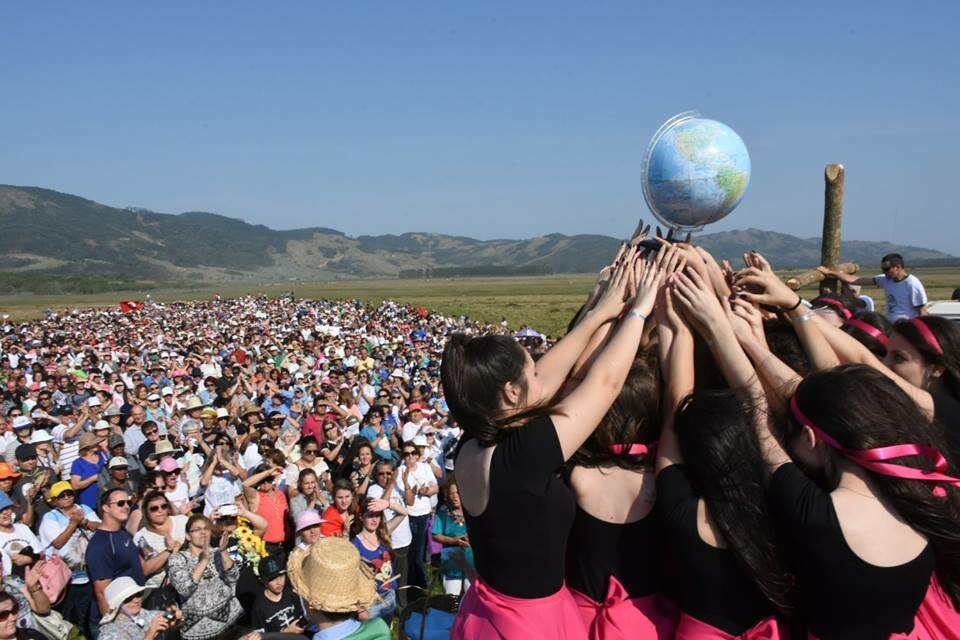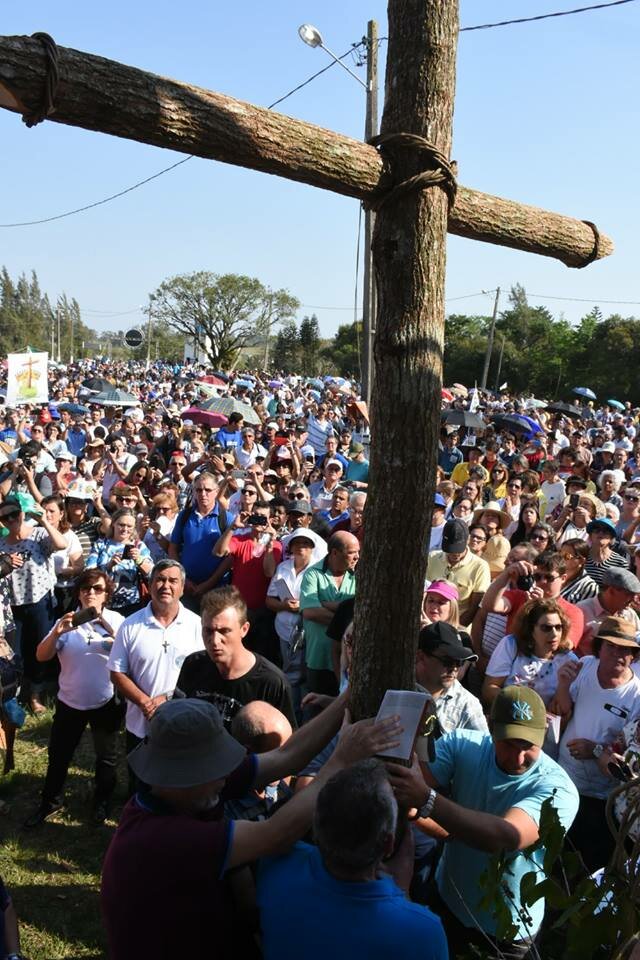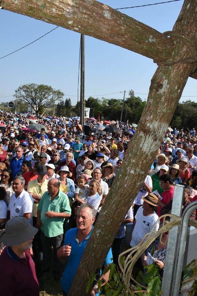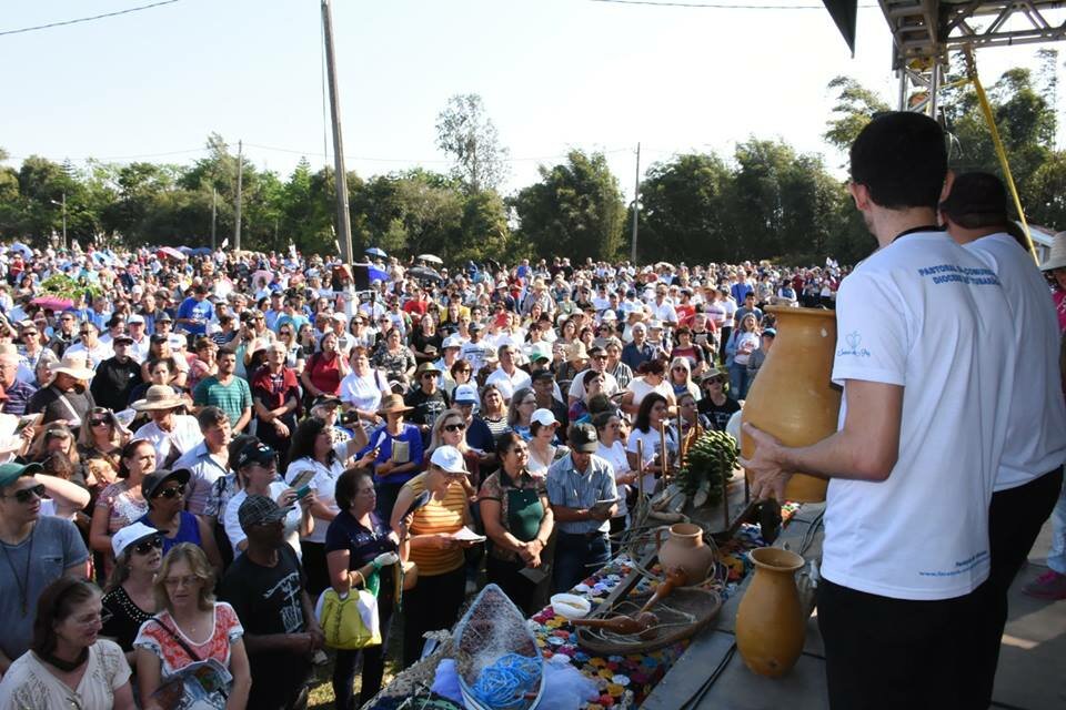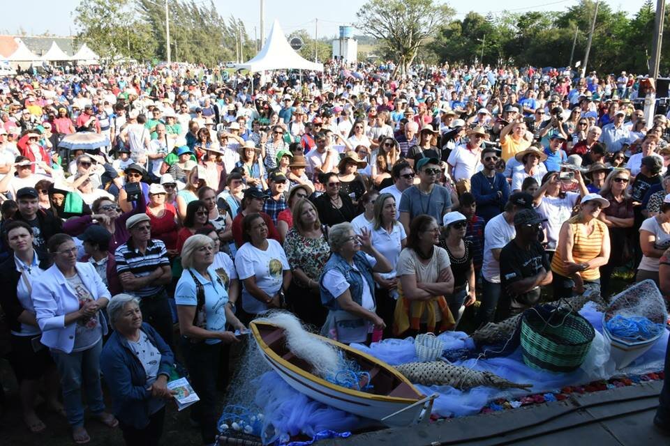 Milhares de pessoas vindas de várias partes do estado de Santa Catarina encontraram-se neste domingo (10), em Pescaria Brava, na paróquia de Capivari de Baixo, na nossa diocese, para a tão esperada Romaria da Terra e das Águas, na sua 24ª edição. Desde o início da manhã várias pastorais e movimentos da diocese já estavam a postos no CTG do Tio Preto, às margens da BR 101, na localidade de Taquaruçu, para acolher os romeiros que já começavam a chegar. Desde as 08h30 foram muitas atividades e atrações no palco principal, como apresentações culturais, música e várias mensagens a partir do tema desta Romaria: Mata Atlântica, Nossa Casa Comum. No final da manhã a celebração da Santa Missa, presidida por Dom João Francisco Salm, bispo de Tubarão e co-celebrada por bispos de seis dioceses do Regional sul 4 e por mais de cinquenta sacerdotes e diáconos. Destaque para a presença do pastor da Igreja Luterana Inácio Lemke.