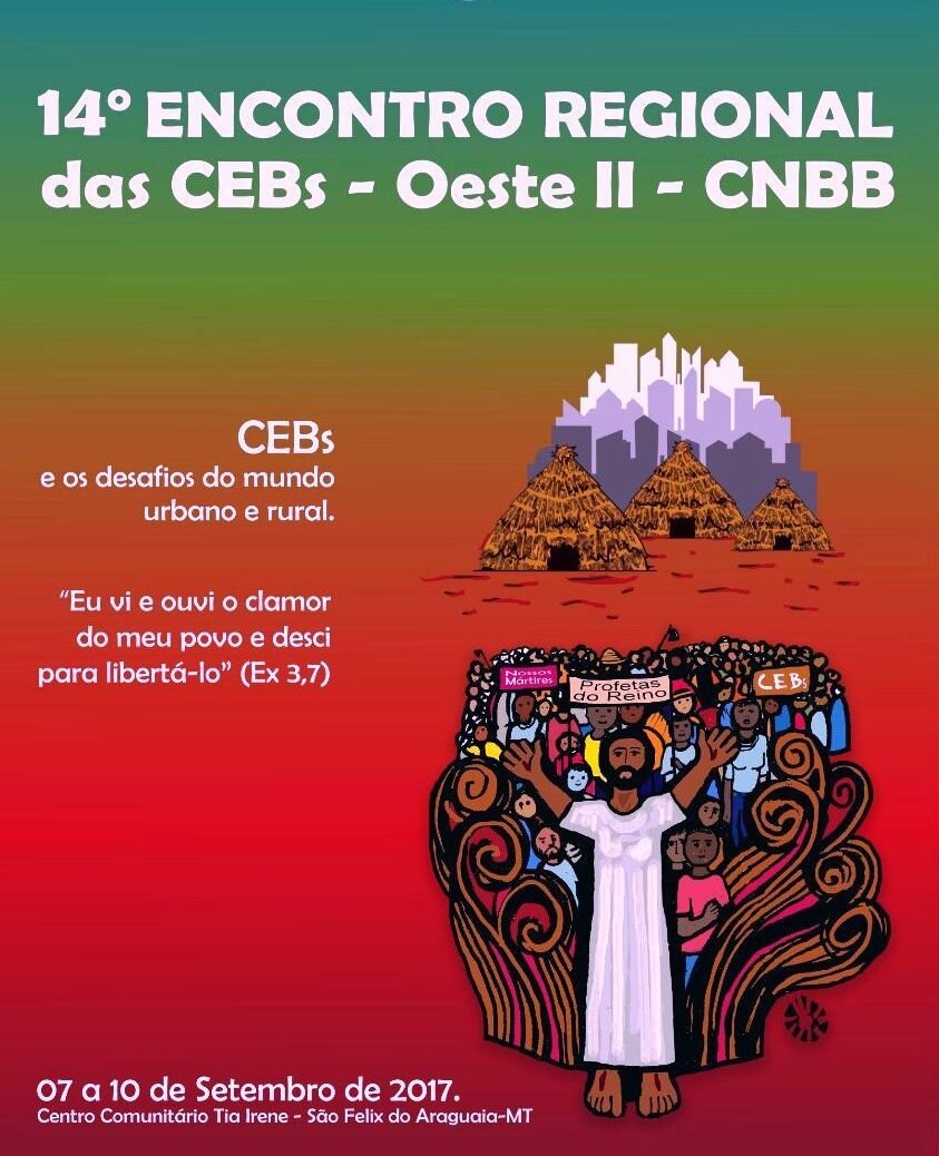 Nós, participantes do 14º Encontro Regional das CEBs, vindos das dioceses de Juína, de Sinop, de Cáceres, de Cuiabá, de Primavera do Leste-Paranatinga, de Rondonópolis-Guiratinga, de Barra do Garças e da Prelazia de São Félix do Araguaia, de Brasília, de Goiânia e Uruaçu, nos reunimos no Centro Comunitário Tia Irene, em São Félix do Araguaia, entre os dias 07 e 10 de setembro de 2017, para refletir e propor ações para o enfrentamento dos desafios do mundo urbano e rural de Mato Grosso.