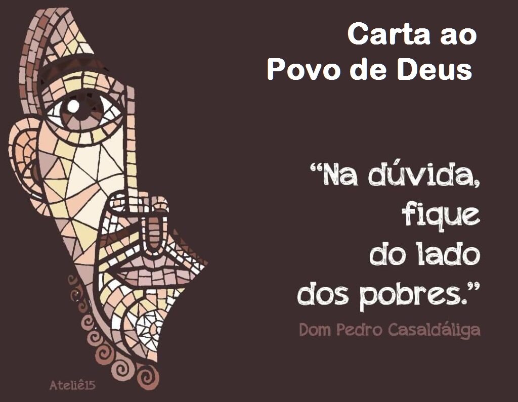 - Somos bispos da Igreja Católica, de várias regiões do Brasil, em profunda comunhão com o Papa Francisco e seu magistério e em comunhão plena com a Conferência Nacional dos Bispos do Brasil, que no exercício de sua missão evangelizadora, sempre se coloca na defesa dos pequeninos, da justiça e da paz. Escrevemos esta Carta ao Povo de Deus, interpelados pela gravidade do momento em que vivemos, sensíveis ao Evangelho e à Doutrina Social da Igreja, como um serviço a todos os que desejam ver superada esta fase de tantas incertezas e tanto sofrimento do povo.
