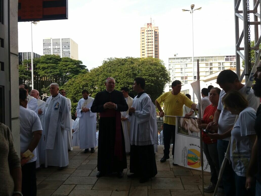 Agradeceu a caminhada dos Grupos Bíblicos de Reflexão, das Santas Missões Populares e do 14º Intereclesial das CEBs. Ressaltou o trabalho e a dedicação dos “anônimos, aqueles que nos bastidores constroem o Reino de Deus, que olham de longe, que se emocionam quando ouvem a voz que chama! Venham para perto, venham para o meio!! Aproximem-se para que possamos juntos ser sinal de Esperança na Igreja de Londrina! A fé tímida é insuficiente, a comunidade assim como Pedro é chamada a confiar, nada de temor, queremos conhecer a cultura de nosso tempo, os desafios de SER IGREJA HOJE, Deus habita essa cidade!”, afirmou Dom Geremias animando os milhares de presentes.