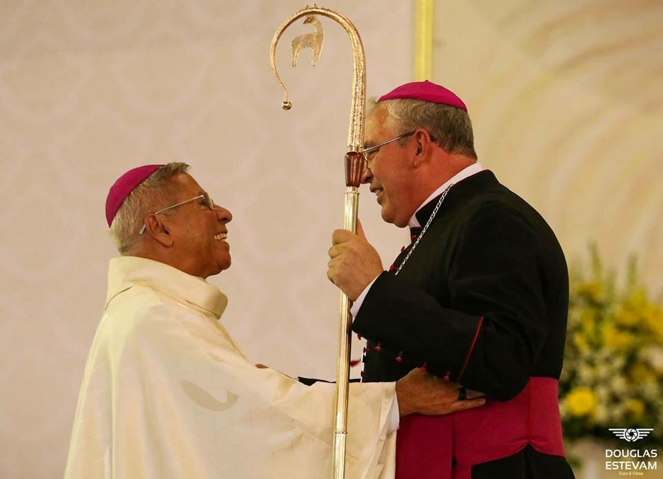 Na celebração, após a leitura do decreto de nomeação, Dom Orlando e Dom Manoel passaram para as mãos do novo arcebispo, o báculo, símbolo do serviço pastoral, ponto alto da cerimônia de posse.