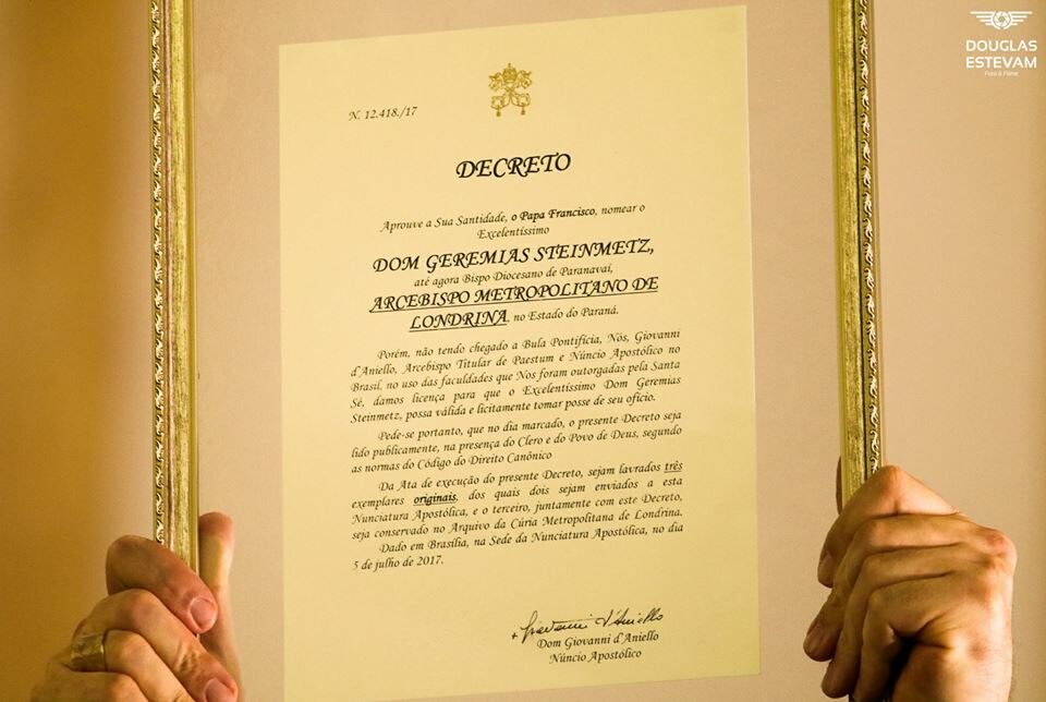 Dom Geremias Steinmetz, tomou posse como o quinto arcebispo de Londrina na tarde de sábado, sob os olhares emocionados de mais de quatro mil fiéis. Para dar as boas-vindas ao seu novo arcebispo, Londrina realizou uma celebração eucarística em sua Catedral Metropolitana com a presença de autoridades civis e religiosas, incluindo Dom Orlando Brandes (que esteve à frente da Arquidiocese de Londrina de 2006 a 2016 e atualmente é arcebispo de Aparecida) o administrador apostólico Dom Manoel João Francisco, bispo de Cornélio Procópio.