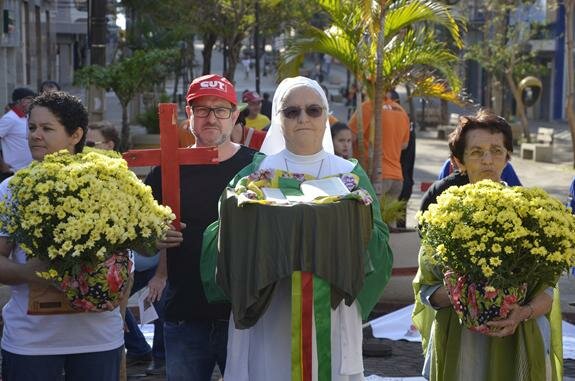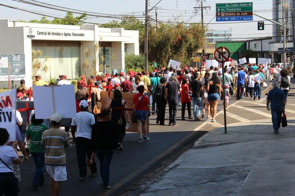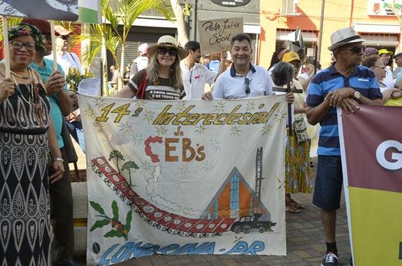Rumo ao 14º Intereclesial das CEBs, em comunhão com a Igreja no Brasil e animados pelo Lema “Eu vi, ouvi os clamores do meu povo e desci para libertá-lo”, a comunidade londrinense foi para as ruas gritar por Direito e Democracia. Participaram representantes da Igreja Católica, Igreja Anglicana, Movimentos Sindicais e Sociais, Coletivos de Luta por Moradia e Direito das Minorias, Defesa de Direitos e Defesa da Juventude movidos pelo grito comum a todos os participantes: Vida em Primeiro Lugar e Nenhum direito a menos.