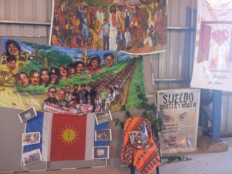 Finalizamos esta jornada con la Celebr ación de los Mártires, se primero cantamos la señal de la santa y luego “Presencia y Memoria” y se  realiza una memoria histórica como Iglesia desde el Concilio Vaticano II a través de la proyección de imágenes de rostros y documentos latinoamericanos. Se  invita a contemplar la pasión y muerte de nuestros “testigos de la fe”. Momento especial en el cual la región Bs As, hace memoria y homenaje a Carlos Barbero, presbítero que acompañó el caminar de las CEBs y falleció este año; también la diócesis de Viedma hizo una especial mención al padre Orlando Yorio. Luego, comienza dentro del salón principal la “Marcha de los mártires”, precedida por el Paño de la Resurrección, las diócesis se fueron sumando con pancartas y fotos de sus mártires locales traídas desde sus respectivos lugares. Se canta “Soy esta tierra, soy esta gente, soy memoria, soy esta historia”. Parte de la marcha se puede ver en https://m.youtube.com/watch?v=E8SaeJ7HMHA