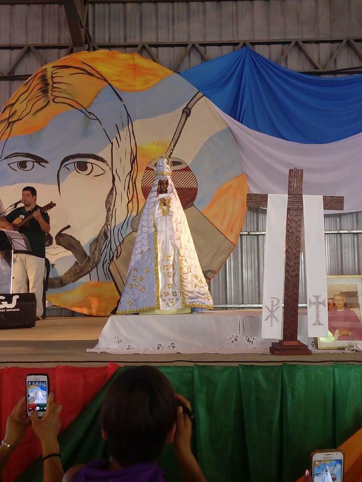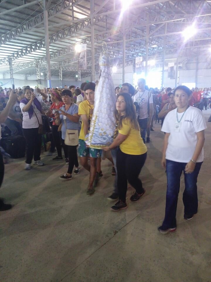 • la VIRGEN MARÍA bajo la advocación de Nuestra Señora de Itatí con un fervoroso aplauso y canto; momento particularmente emotivo que hizo a los presentes ponerse de pie;