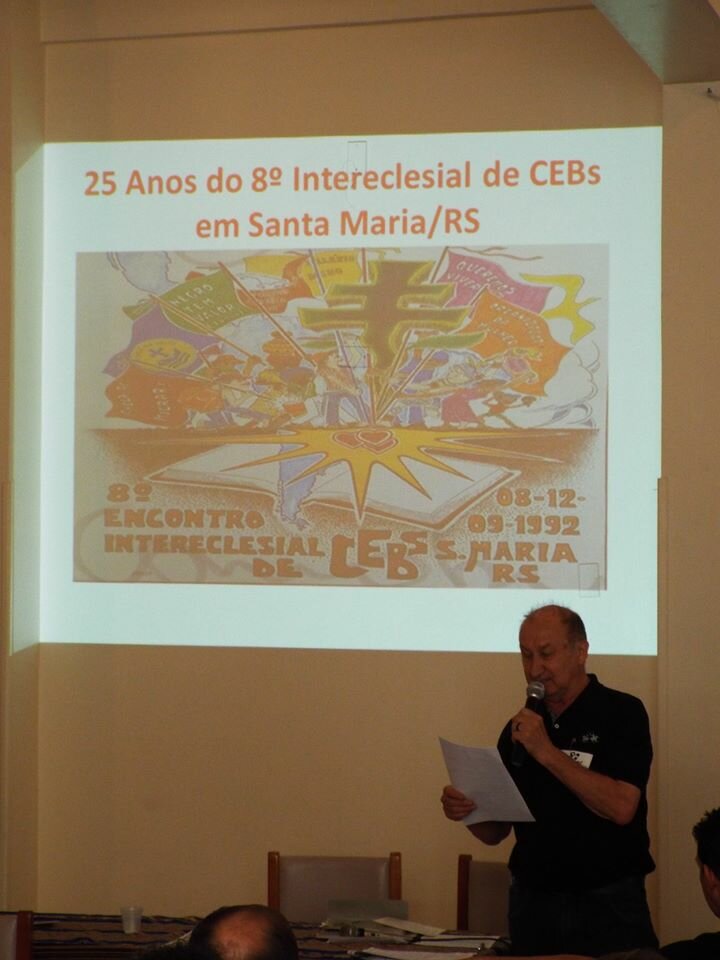 Passados 25 anos do VIII Encontro Intereclesial das CEBs do Brasil, realizado de 8 a 12 de Setembro de 1992, na Cidade de Santa Maria, Coração do Rio Grande do Sul, reuniram-se em torno de 100 pessoas que atuaram nas 40 equipes de serviço que deram sustentação ao evento. Fizemos memória, da organização do encontro, evidenciando o Processo Metodológico na construção de Comunidades e os frutos que dele resultaram, e até hoje permanecem vivos: O engajamento de muitas(os) cristãs(os) nas comunidades e pastorais, bem como nos movimentos de luta por Direitos, a disseminação da organização dos Catadores, o fortalecimento das Alternativas de Economia Solidária e outros meios de promoção e defesa da vida.