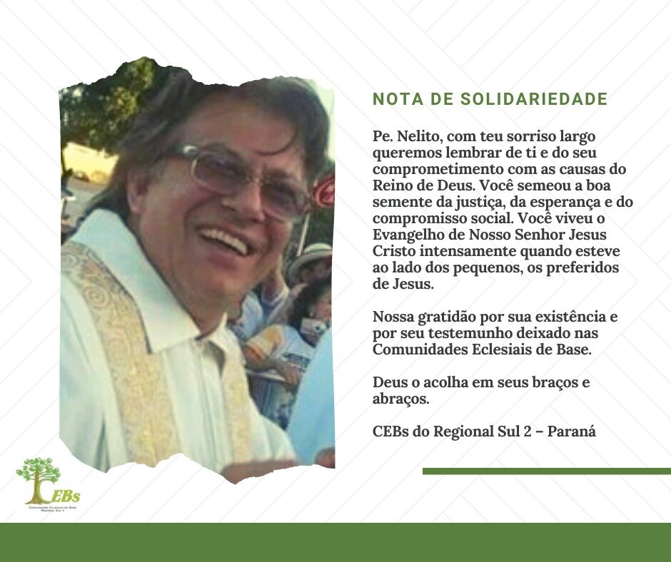 Pe. Nelito, com teu sorriso largo queremos lembrar de ti e do seu comprometimento com as causas do Reino de Deus. Você semeou a boa semente da justiça, da esperança e do compromisso social. Você viveu o Evangelho de Nosso Senhor Jesus Cristo intensamente quando esteve ao lado dos pequenos, os preferidos de Jesus.