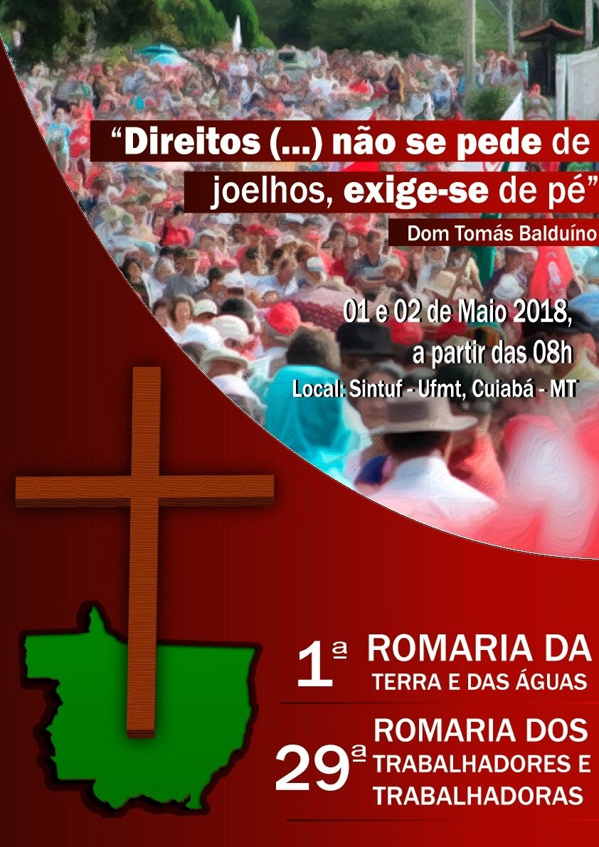 A 1ª Romaria da Terra e das Águas e 29ª Romaria dos Trabalhadores e Trabalhadoras irá acontecer nos dias 01º e 02 de maio em Cuiabá, com o objetivo de fortalecer a luta pelo direito à cidade, direito à terra e à permanecia no campo com qualidade de vida e respeito à realidade camponesa.